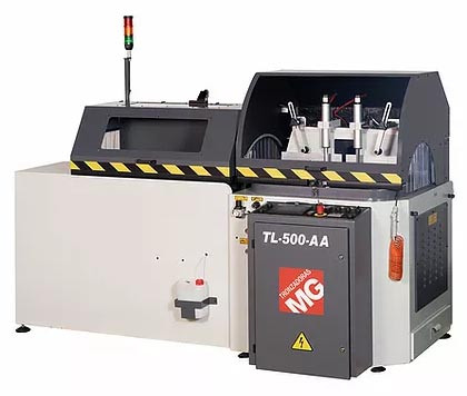 Cette tronçonneuse aluminium avec avance automatique coupe d'angles dispose d'une lame rotative de -45° / 90° / +45°.
