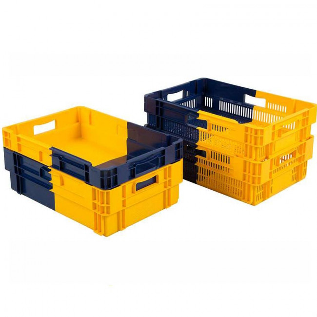 Grâce à ses poignées ouvertes sur tous les côtés et à son coloris bicolore bleu/jaune, notre bac alimentaire empilable assure une manutention simple, une identification visuelle rapide et une optimisation de vos flux.