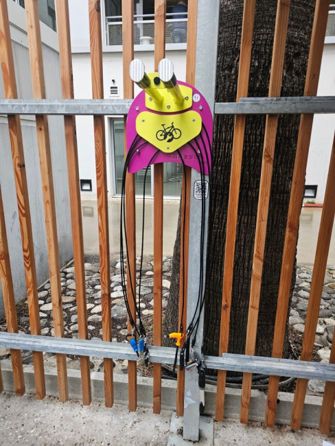 L’installation trouve naturellement sa place dans les campus, entreprises, copropriétés, écoles, magasins, campings, bikeparks et tout lieu où une borne vélo pour collectivités est utile.