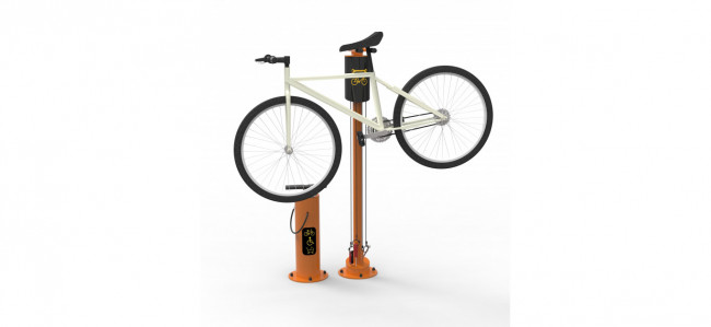 - Enfin, une station de réparation pour vélo se distingue pour son côté sécuritaire. En effet, les vélos à dépanner peuvent y être soulevés sans crainte. Les divers outils accessibles sont accrochés à un câble en acier pour éviter les vols.