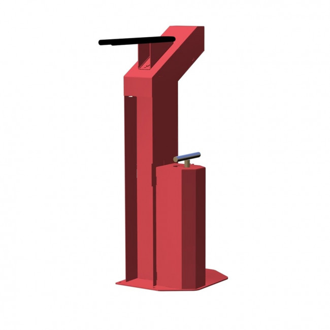 La station service vélo est équipée d’une pompe de gonflage manuelle en inox, intégrant un manomètre pour contrôler précisément la pression des pneus.