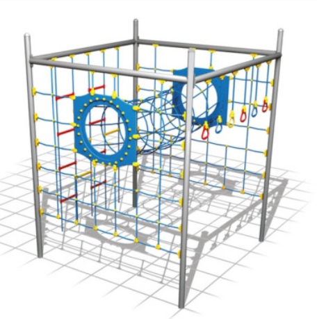 - 1 Horizontale bagues en polyéthylène d'escalade suspendu à un tube d'acier avec des cordes en nylon avec noyau en acier de câble interne enduit.