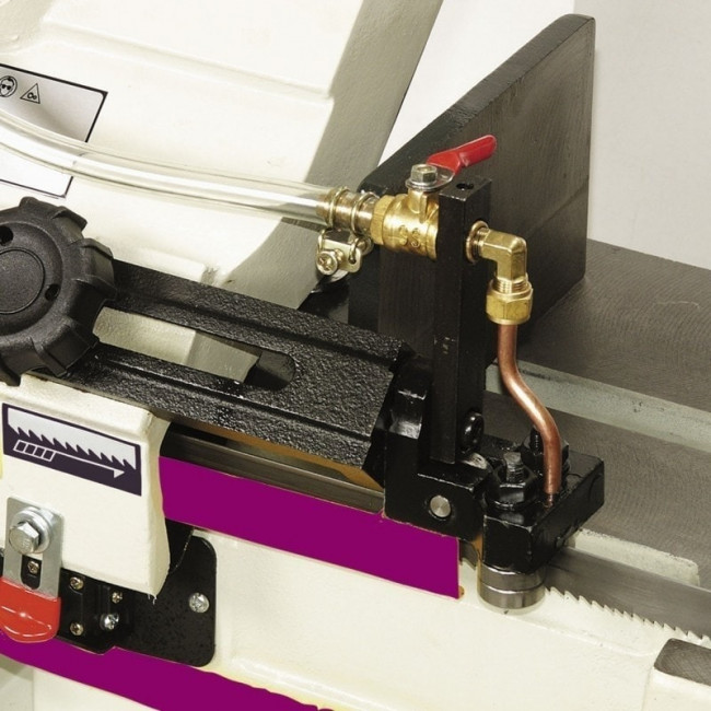 Avec sa descente assistée par vérin hydraulique et son système d'arrosage, elle offre une coupe précise et efficace.