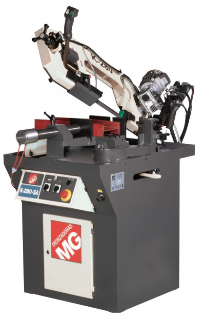 Cette scie à ruban semi-automatique à 2 vitesses permet de réaliser des coupes de fer et d'acier jusqu'à 60º à droite.