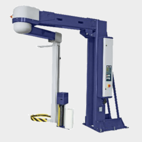 Banderoleuse verticale à bras tournant semi automatique