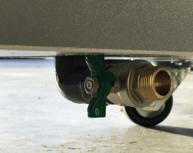 Fenettre de contrôle de remplissage, event inox, robinet 1/4 de tour de vidange, raccord fileté pour evacuation étanche (tuyau ou pompe).