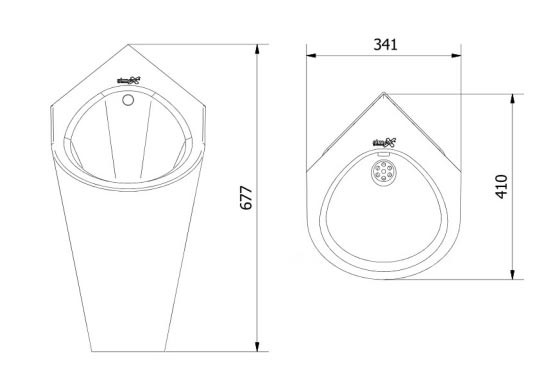 Acier inoxydable AISI 304 Epaisseur : 1,5 mm Finition : Satiné ou Brillant Attaché au mur Dimensions : 677 x 341 x 410 mm