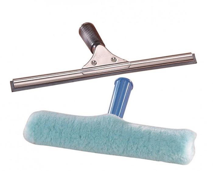 Composé d'une raclette et d'une housse lavable en microfibre, ce kit est prévu pour les vitres de grandes surfaces à partir de 1.10 m de largeur.