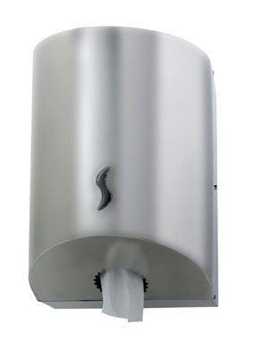 Ce distributeur à dévidage central est peut accueillir les bobines à grande capacité pour l’essuyage des mains et des surfaces.