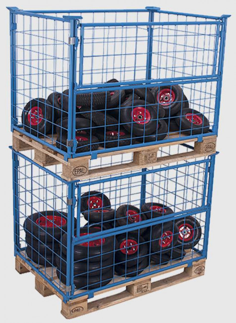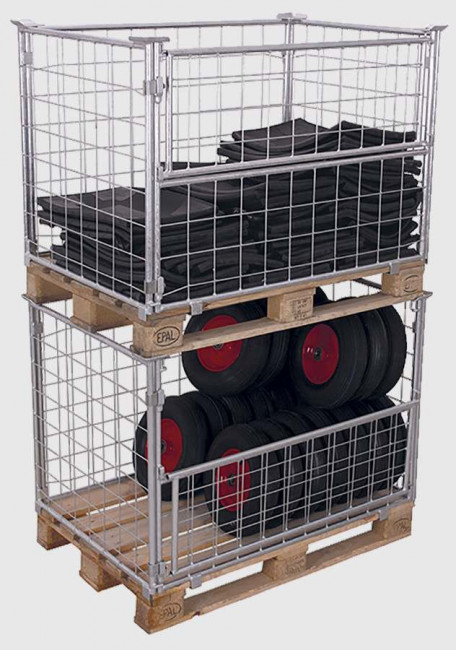 Proposée en plusieurs hauteurs de remplissage (800, 1000, 1200 ou 1600 mm), elle supporte jusqu’à 750 à 1000 kg, avec un empilage sécurisé jusqu’à 4 niveaux.