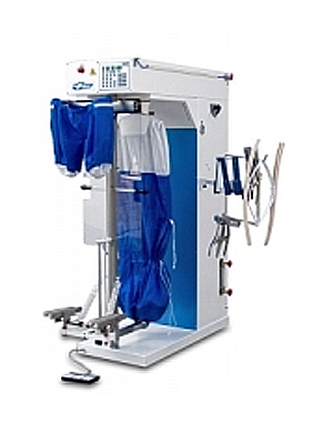 Mannequin tournant, vaporisant et soufflant, conçu pour le repassage de jupes, pantalons, vestons et blousons.