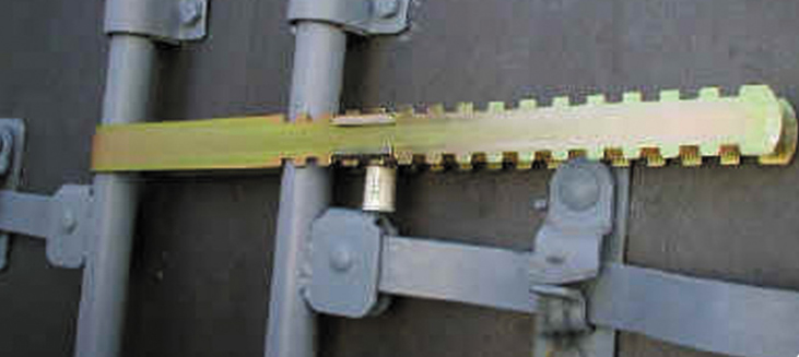 Ce scellé haute sécurité est composé d'une barre métallique et d'un scellé clou, ce dernier est un container loc.
