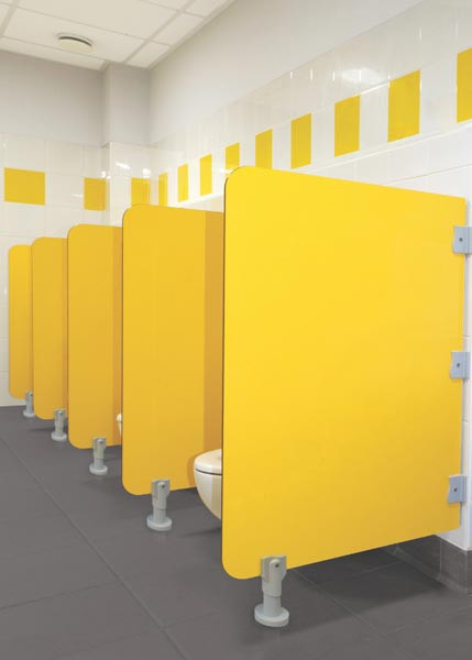 Notre séparation urinoir maternelle utilise un panneau stratifié massif de 10 mm d'épaisseur, garantissant une résistance aux chocs et à l'usure quotidienne.