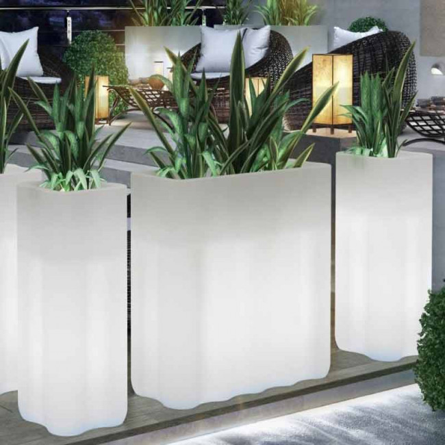 Cette jardinière haute lumineuse est conçue pour un usage aussi bien à l’intérieur qu’à l’extérieur d’un restaurant, hôtel, maison…