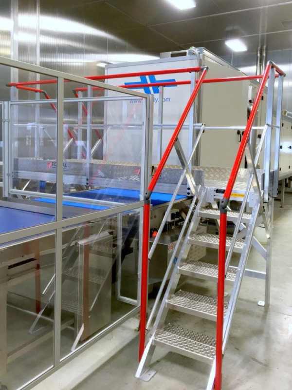 Les marches caillebotis antidérapantes et le garde-corps garantissent un passage sécurisé en minimisant les risques de chute, même dans des conditions de travail difficiles.