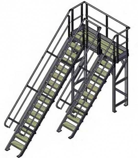 Escaliers à palier double accès pour site pétrochimique - Charge : 200 kg/m²