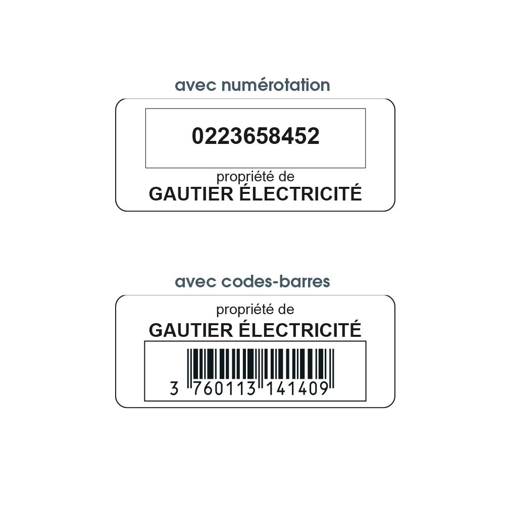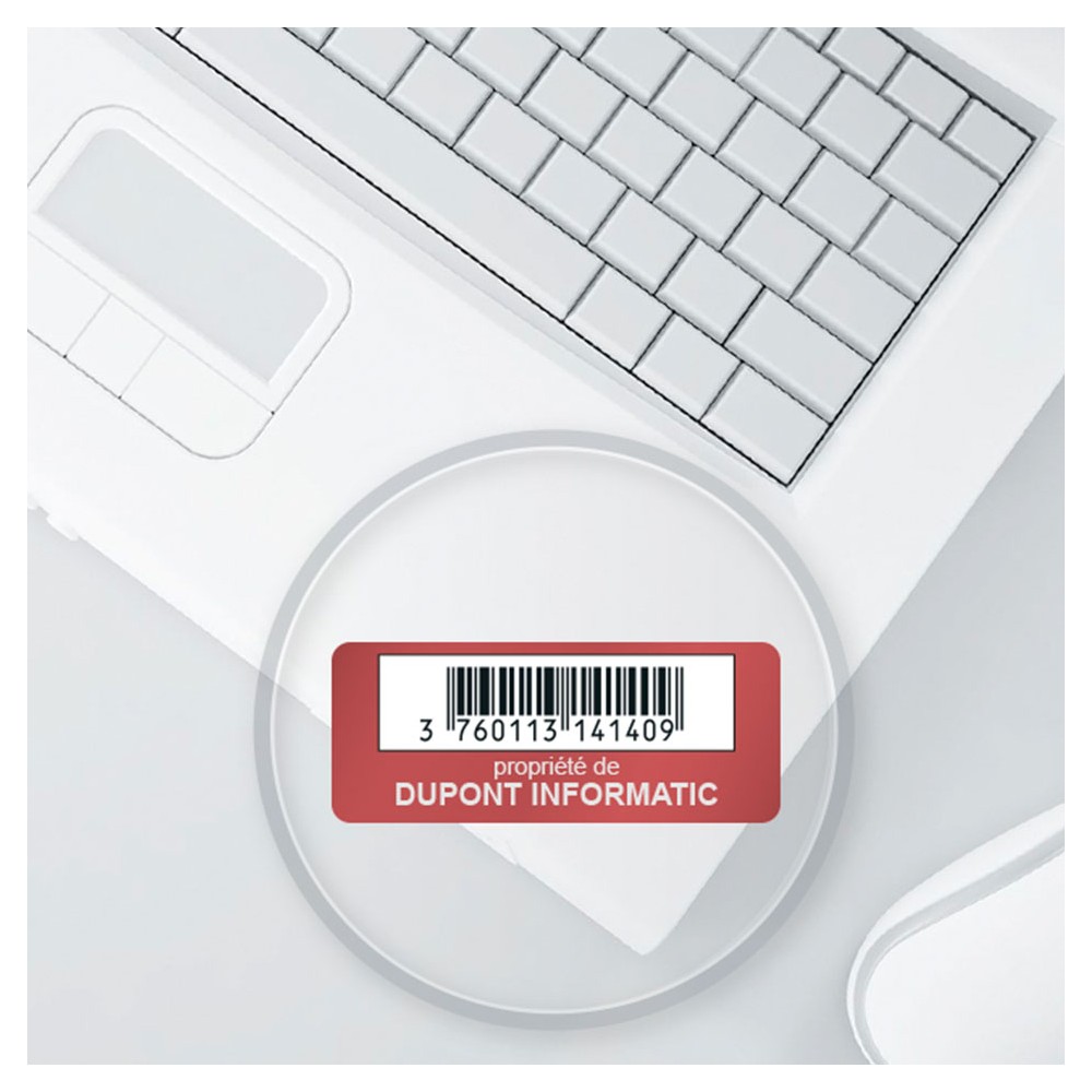 Entièrement personnalisable au nom de votre entreprise, nos étiquettes permettent d'identifier, dissuader et réaliser vos inventaires.