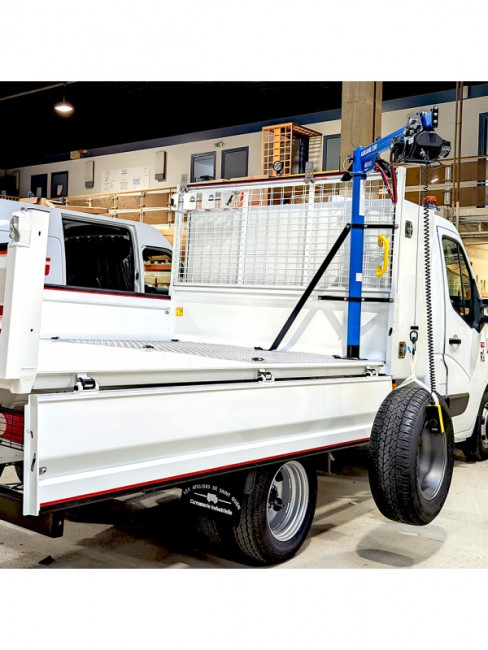 Elle est conçue pour être installée sur des véhicules utilitaires, tels que des fourgons, des bennes ou des plateaux, et pour faciliter les opérations de manutention dans divers secteurs, tels que le bâtiment, l'industrie, l'agriculture, etc.