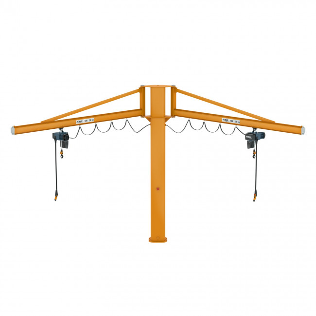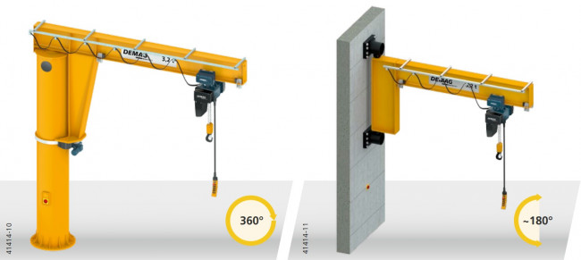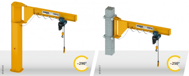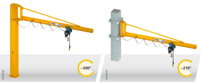 Nos potences pivotantes permettent le levage et le transport facile et rapide de tous types de pièces ainsi qu'une dépose en douceur et avec précision. Elles peuvent être installées aussi bien lorsqu'elles sont installées près des machines d'usinage ou des postes de montage que sur les aires de stockage libres et les zones de chargement. Elles peuvent être installées ; ou encore directement au poste de travail et associées à une grande variété d'appareils de levage.