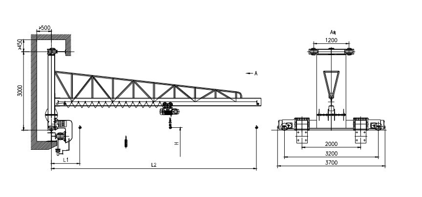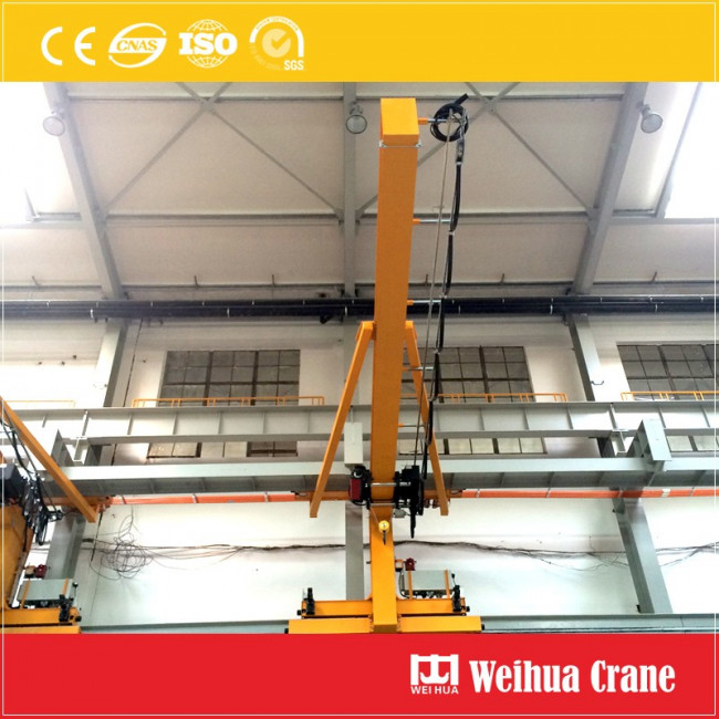 - La potence peut se déplacer longitudinalement le long du rail. Dans le même temps, le palan électrique peut effectuer le mouvement horizontal le long du bras de flèche / porte-à-faux et la tâche de levage vertical.