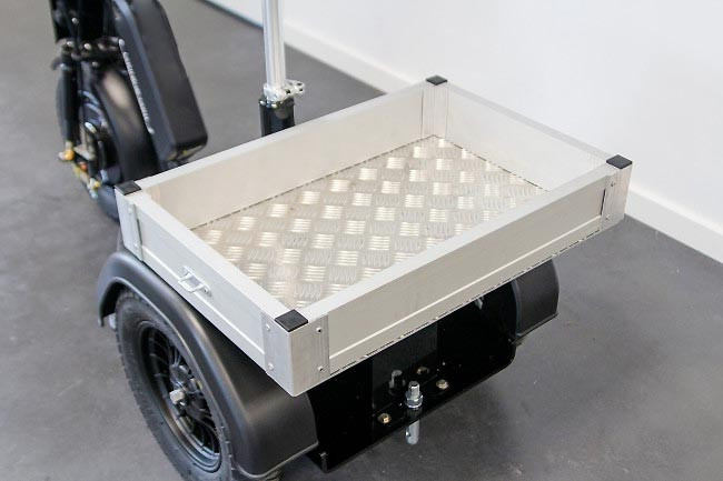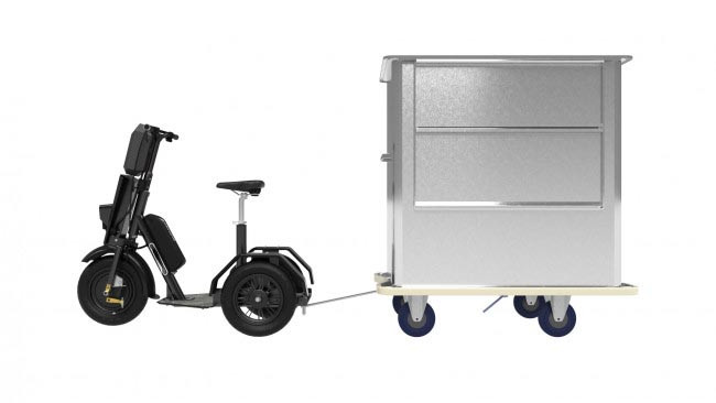 Caisse aluminium : un module résistant qui permet de déplacer tous vos besoins du quotidien. Caisson déchet : un caisson résistant et volumineux pour la gestion des déchets. Ce conteneur permet de transporter jusqu'à 1m3. Kit pour le transport de poubelles : un module spécialement développé pour tracter et déplacer des poubelles.