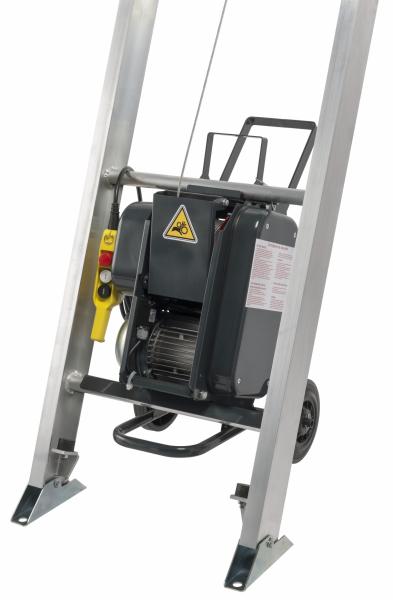 - Treuil facilement démontable de l’échelle de base et équipé de roues pour la manutention