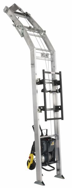 D’une hauteur de 10,5 m, ce monte matériaux est équipé d'un plateau couvreur 197 L qui permet de lever des charges de 175 Kg.