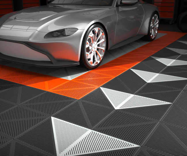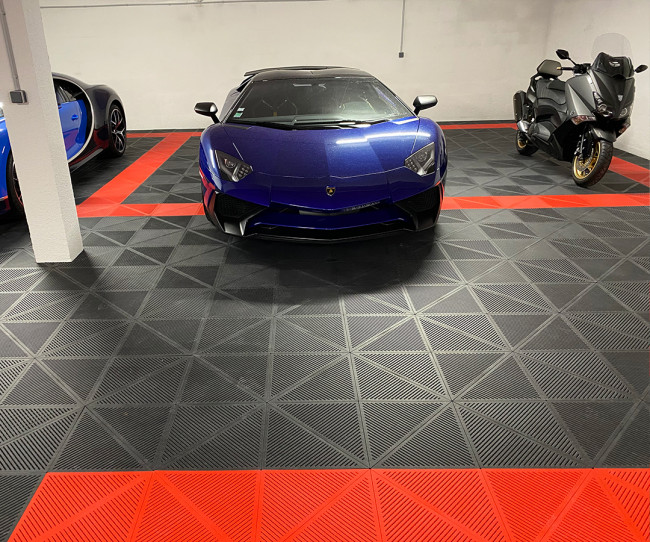 Personnalisez votre sol de garage sans outils spéciaux et sans expérience ni adhésif. Contrairement à la peinture époxy ou à la peinture de sol, aucun travail de préparation n’est nécessaire et surtout : pas d’arrêt de votre activité = pas de perte de chiffre d’affaire.
