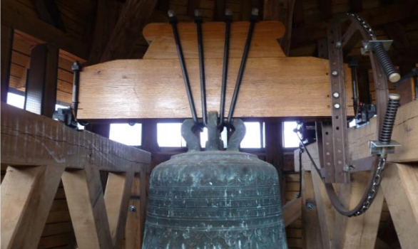 Jougs en bois de chêne taillés à la main en respectant les caractéristiques des bois, ils sont calculés en fonction de la cloche et du beffroi et sont équipés de :