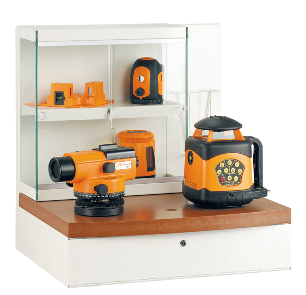 - Boitier métallique - Peut contenir 3 rangées de produits avec fixation à l'aide d'une vis 5/8'" plus 4 à 6 petits produits dans une vitrine - Possibilité de verrouillage comme protection antivol - Dimension (Lxpxh) cm : 50x45x50