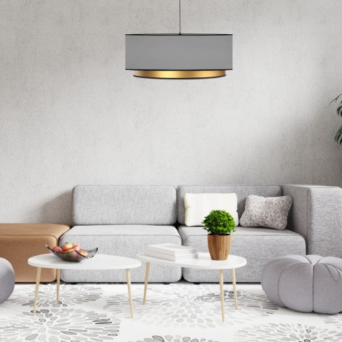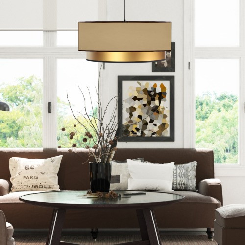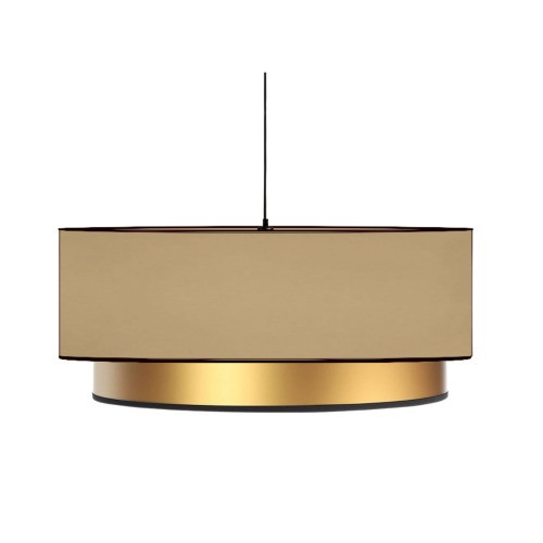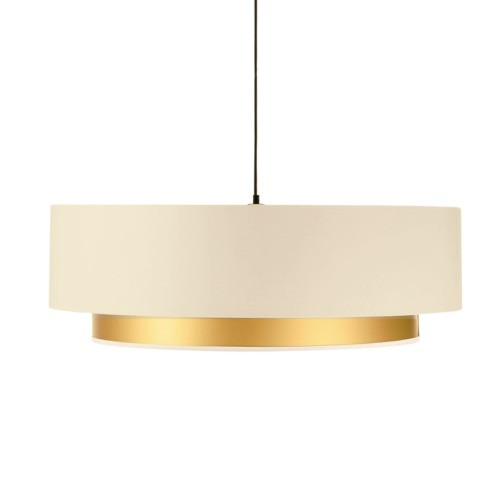 Cette suspension en coton et double cylindre or est un luminaire élégant et polyvalent qui apporte une touche de sophistication à votre espace.