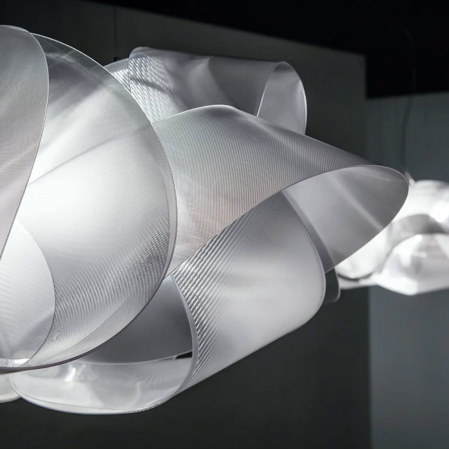 Le design Fabula est inspiré par un long ruban de soie souple. Elle est fabriquée à partir du matériau Lentiflex® de la marque SLAMP et intègre un système d'ancrage magnétique qui facilite l'installation et entretien.