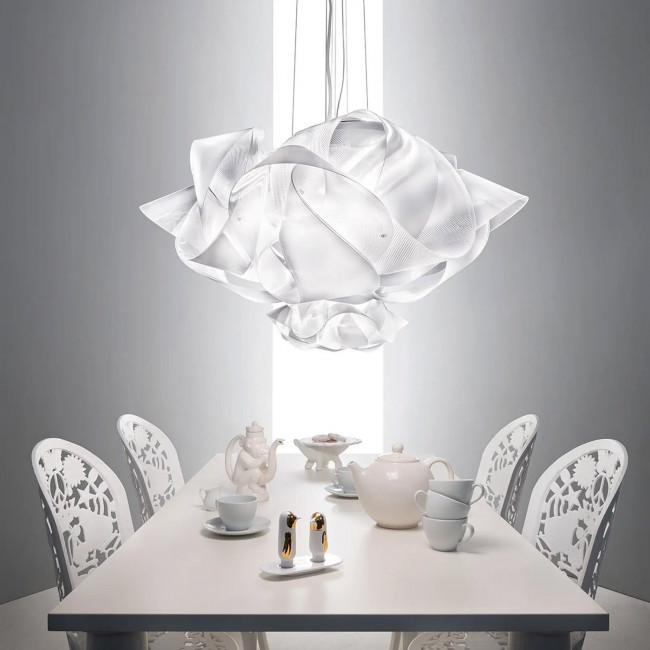 La Lampe Suspendue Fabula Small SLAMP a un design moderne et à la fois élégant. Il s'agit d'un design fait main par la prestigieuse marque italienne "SLAMP", une société dédiée à l'éclairage design.