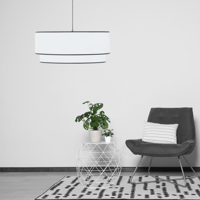 La finition noire des bordures apporte une élégance supplémentaire aux suspensions en coton blanc.