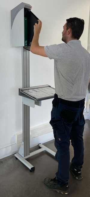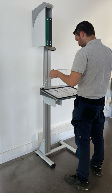 Besoin d"un pupitre pour signer des documents en atelier, avec la possibilité de poser un ordinateur et des feuilles A4