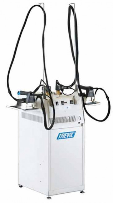 - Deux fers professionnels vaporisants ambidextres, avec double poussoir de commande vapeur
