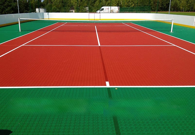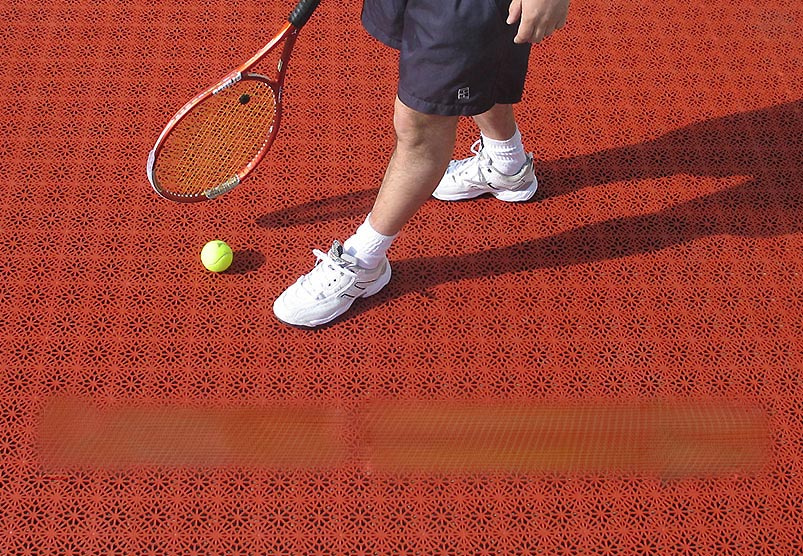 Les dalles pour terrain de tennis en Polypropylène 100% Recyclable ont une dimension 30 x 30 cm - Épaisseur de 14 mm - peuvent être installées en quelques heures sur TOUS TYPES de SOL sans Colle ni outil de fixation.