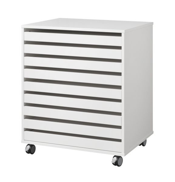 Idéal pour les établissements scolaires, les ateliers d'art ou les bureaux, ce meuble de rangement papier dessin propose une capacité optimale grâce à ses neuf grands tiroirs coulissants au format raisin.