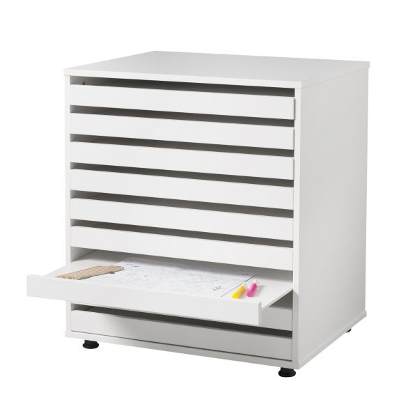Utilisez-le comme armoire à dessins en maternelle, meuble rangement papier dessin dans une salle d’arts plastiques ou mobilier rationalisé pour archiver les documents de grand format dans tout environnement professionnel.