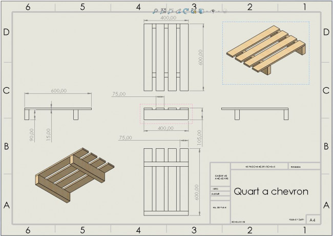 Description Quart palettes 600 x 400Dimension : 600 x 400 x 135 mm4 Planches 600 x 75 x 15 mm2 Traverses de 400 x 90 x 40 mmCharge utile : 200kgNombre d’entrée : 2Conditionnement x 50 imbriquéLa quart-palette de manutention est un accessoire destiné à rationaliser la manutention, le stockage et le transport de marchandises. L'idée pertinente de l’innovation fut de standardiser le mode de reprise de charge par le dessous en faisant une surélévation minimale d'un élément rigide.Ces palettes sont conçues pour supporter des charges légères ou lourdes permettant une manutention sécurisée et stable de l’ensemble. Leur forte résistance permet de les utiliser également comme support pour le stockage.Devis sur simple demandeN'hésitez pas à rentrer en contact avec nous !Devis sur simple demandeN'hésitez pas à rentrer en contact avec nous ! www.sepalette.comwww.sepalette-63.com