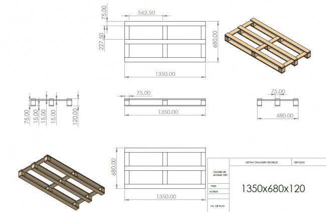 www.sepalette-63.com www.sepalette.com Palette deux entrée 1350 x 680 x 120 Dimension : 1350 x 680 x 120 - 6 planches de1350 x 75 x 15 mm - 9 Plot de 7