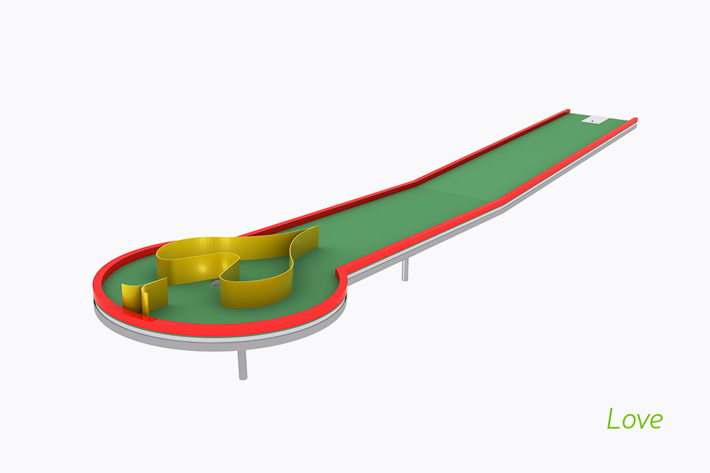- Pistes avec des conceptions créatives telles que "l'horloge” amical ou excitant “le coeur”. Des obstacles qui surprennent, qui encouragent la pratique de sports de plein air et les moments de détente.