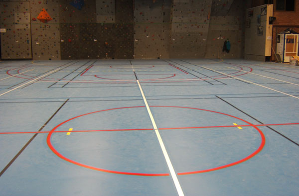 Nous sommes un centre de formation et nous utilisons un halle d"hippodrome en guise de gymnase. La peinture du sol a été refaite par les propriétaires de l"hippodrome et nous devons donc refaire les lignes du terrain de basket, de hand, de volley-ball ainsi que les 6 terrains de badminton. Le sol est en enrobé peint.