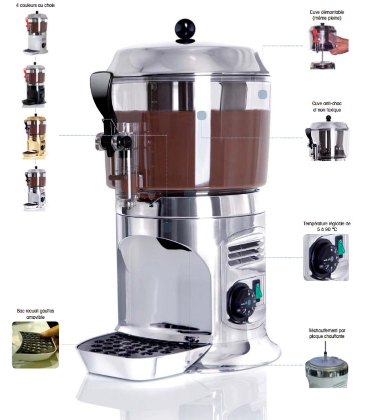chocolatière électrique professionnelle est un distributeur de comptoir idéal pour la préparation et le maintien en température de chocolats et autres boissons chaudes, qu’elles soient liquides ou plus épaisses.