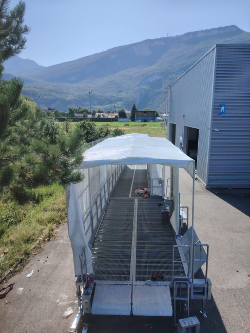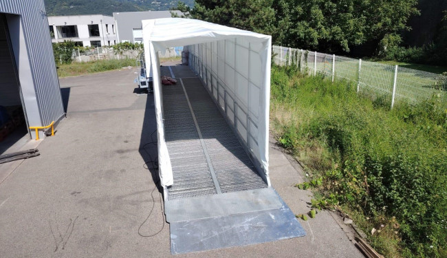 Plateforme logistique, plateforme stockage, plateforme manutention, rampe avec protection pluie et plateforme, plateforme avec quai niveleur.