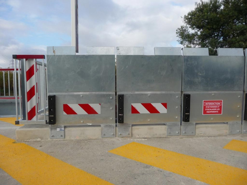- Butoir en caoutchouc amortissant les chocs des différents véhicules. - Panneau d’habillage personnalisable. - Les fixations au sol sont prévues avec un système antivol. - Platines de fixations renforcées et sur mesure suivant le support.