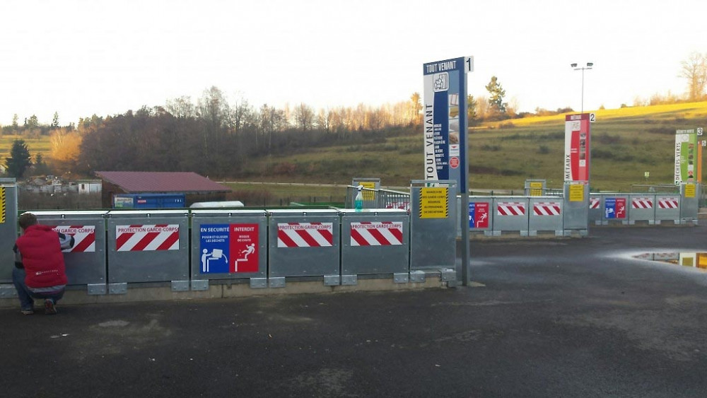 Cette bavette de déchetterie contribue aussi à la limite du dépôt de déchets entre le mur et la benne.