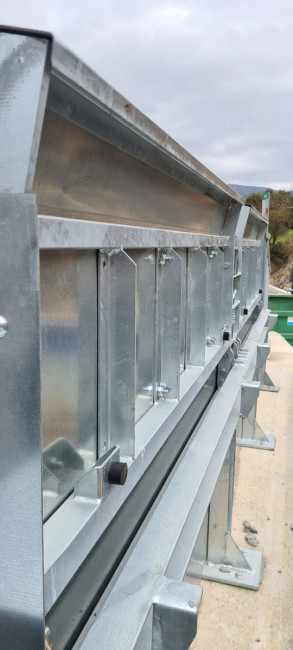 Fourniture de 36ml de garde-corps pleins avec rabat horizontal. Le garde-corps est réalisé de manière à avoir un total de 1,10 m de gardes corps en cumulant le béton de haut de quai, la partie fixe verticale du garde-corps et la partie rabattable horizontale du garde-corps. L’ensemble vertical, constitué du béton et de la partie fixe du garde-corps, aura une hauteur minimale de 65 cm. Le garde-corps sera fixé sur le mur de soutènement B.A existant, satisfaisant aux normes en vigueur,