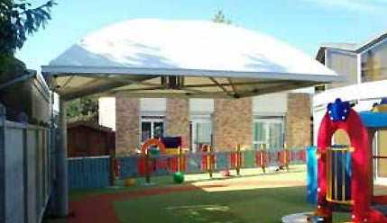 La toiture est fabriquée avec une membrane de couverture LAC 650, un tissu 100 % polyester enduit PVC sur les deux faces, offrant une grande résistance aux UV (norme UPF 50+), ainsi qu'un classement au feu M2.