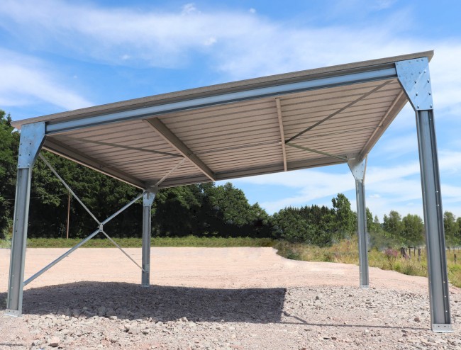 14/04/2023abri voiture métallique ouvert avec toit en pente simple 25m²
